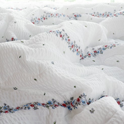 지베누오 국내 생산 냉감 누빔 프릴 양면 시어서커 리플 여름 차렵 이불 패드 세트 슈퍼싱글 퀸, 이불단품, 퀸(Q), 10.들꽃(블루)